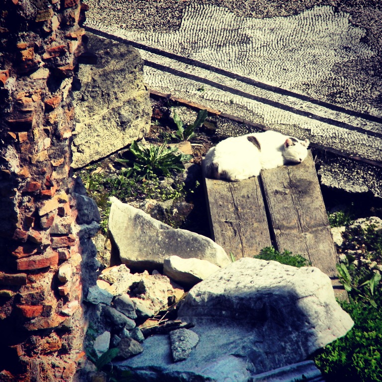 When I visited Italy in March 2011, one of the wonderful things I noticed is that the strays are well cared for, especially in ruin areas, where they run free and happy. It only makes sense that I found these refuges, being an animal lover myself.